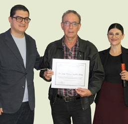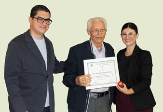 Se aprovechó este sencillo acto, para hacer un reconocimiento al Dr. Javier Prada Torres. Su hijo, el Dr. Javier Prada López se encargó de develar la placa. “Por su gran labor como pionero y precursor de la optometría en Costa Rica, nuestro eterno agradecimiento, Junta Directiva del Colegio.”