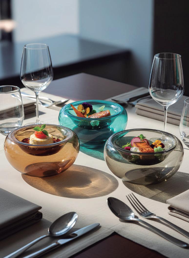 Elaboradas con maestría para crear artículos de coctelería clásicos y atemporales para todo tipo de preparaciones, que brindan una belleza sofisticada y clásica a sus clientes, las piezas de la colección, intercambiables, permiten personalizar cada espacio y dar un toque vibrante al clásico vaso para bebidas. Los acabados Solar, Lunar y Midnight, aportan una estética monocromática de lujo, a la vez bella y funcional.
