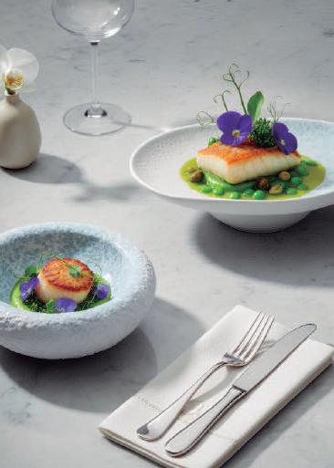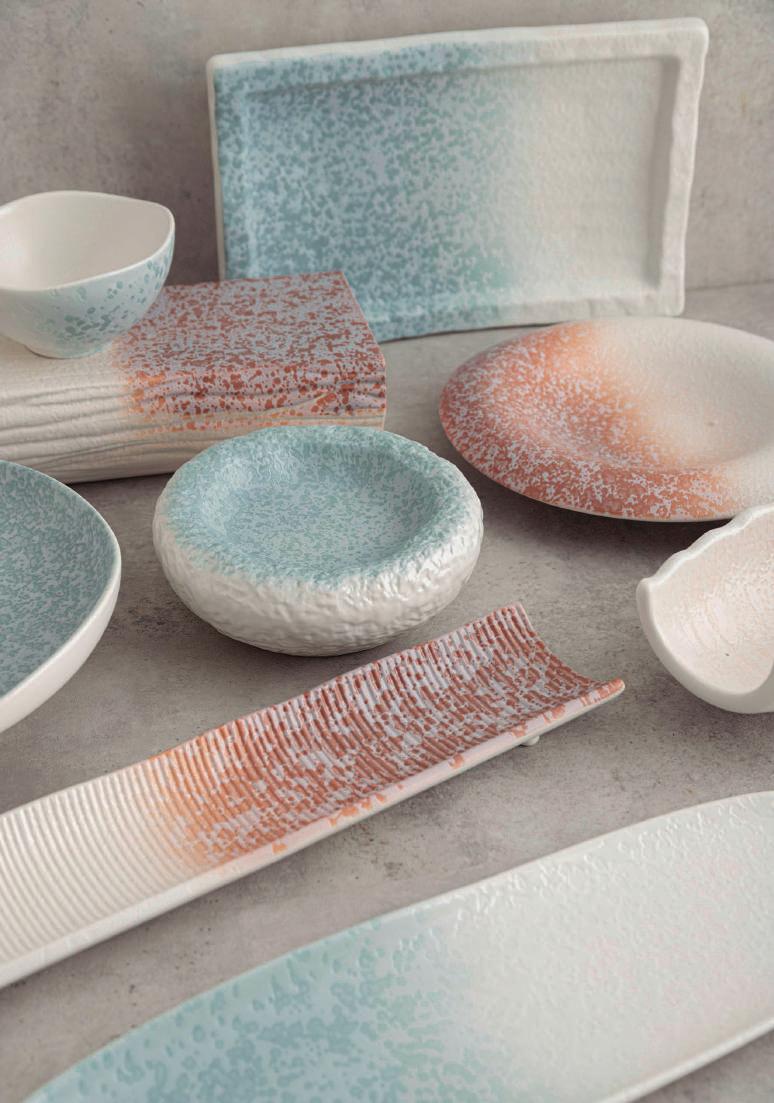 Formas fluidas y un look orgánico que aporta movimiento al plato. Ideal para propuestas frescas, vegetales y composiciones ligeras.