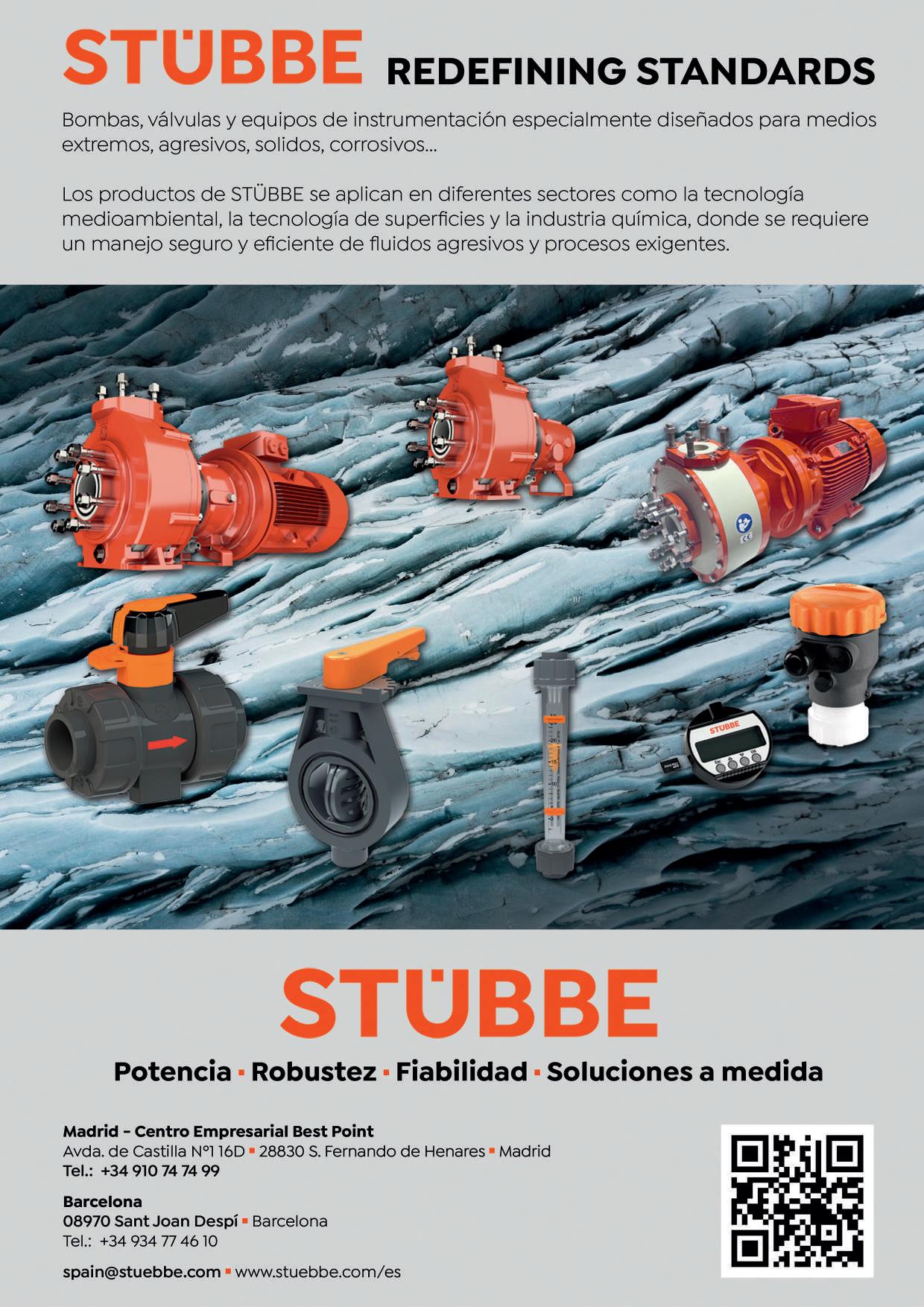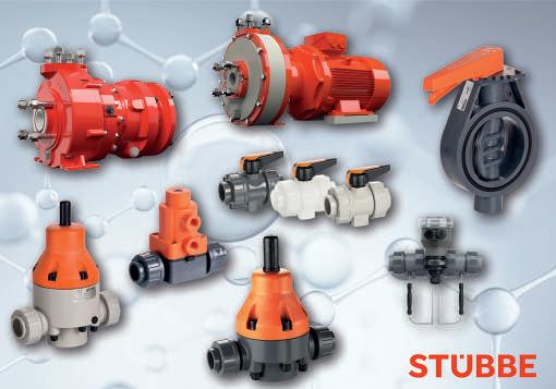 Las bombas y válvulas de Stübbe se han desarrollado para ofrecer un rendimiento constante incluso ante ácidos, cloro, sosa cáustica, tensioactivos, fosfatos, colorantes o agentes blanqueadores, soportando temperaturas exigentes y altos niveles de corrosión.