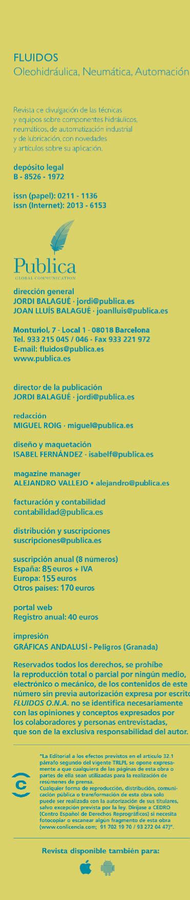 Por supuesto, este número incluye, como de costumbre, la Guía del Comprador, sección fija de la revista, permanentemente actualizada y que constituye un eficiente y recomendable espacio publicitario que utilizan y han utilizado centenares de empresas a lo largo de la historia de esta revista fundada en 1972, entre ellas, naturalmente, las más reputadas de los sectores de la hidráulica y la neumática en nuestro país y también en el ámbito internacional.