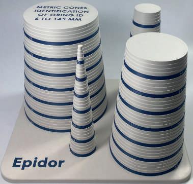 Herramienta para la medición de juntas tóricas Evitar errores de identificación de las juntas tóricas es vital para el funcionamiento de la maquinaria. Una identificación incorrecta de las juntas tóricas puede tener consecuencias graves: fugas, averías costosas o paradas imprevistas de producción. Para evitar este problema, Epidor ha creado los conos Epidor identificadores para juntas tóricas, una herramienta práctica y duradera para cualquier profesional de la estanqueidad.