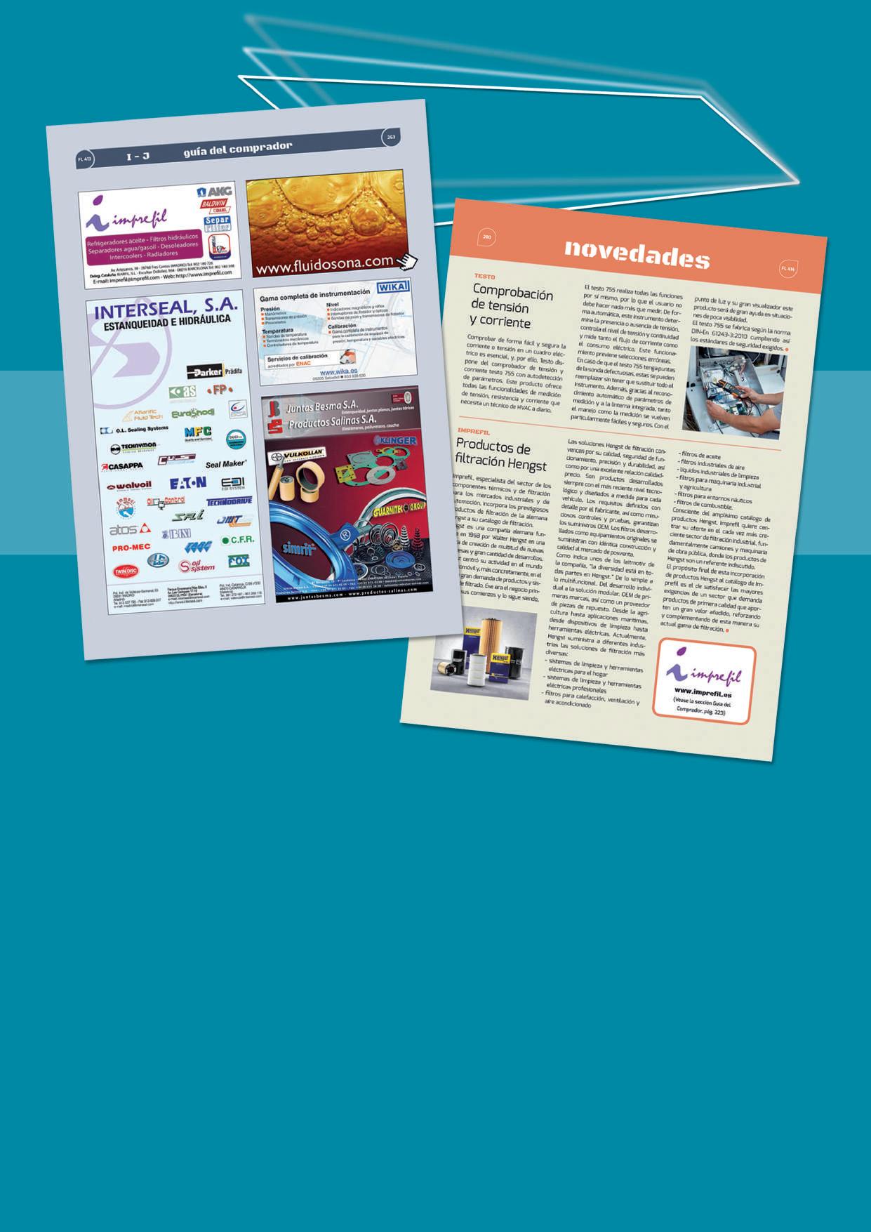 Guía de Empresas 2026 La parte central de este número especial de Fluidos O.N.A. es la información sobre empresas de los sectores de hidráulica, neumática, lubricación y afines, que los usuarios registrados también pueden consultar en línea accediendo a www.fluidosona.com