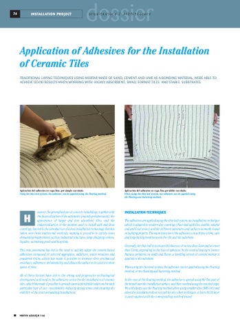 Application of Adhesives for the Installation of Ceramic Tiles TRADITIONAL LAYING TECHNIQUES USING MORTAR MADE OF SAND, CEMENT AND LIME AS A BONDING MATERIAL, WERE ABLE TO ACHIEVE GOOD RESULTS WHEN WORKING WITH HIGHLY ABSORBENT, SMALL FORMAT TILES AND STABLE SUBSTRATES