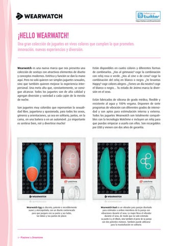 Wearwatch es una nueva marca que nos presenta una colección de sextoys con atractivos elementos de diseño y conceptos modernos. Estética y función se dan la mano aquí. Pero no solo quieren ser simples juguetes sexuales, sino que también quieren mejorar la experiencia interpersonal. Una meta alta que, constantemente, se consigue alcanzar. Todos los juguetes son de alta calidad y agregan diversión y variedad a cada cajón de la mesita de noche. Son juguetes muy coloridos que representan la sexualidad libre, juguetona y apasionada, para todos los sexos, géneros y orientaciones, ya sea en solitario, juntos, en la cama, en una bañera o en un automóvil. ¡Lo importante es sentirse bien, reír y divertirse mucho!