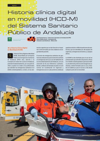 <La Historia Clínica Digital en Movilidad (HCDM) a Historia Clínica Digital en Movilidad (HCM), desarrollada por la Empresa Pública de Emergencias Sanitarias de Andalucía (EPES 061), adscrita a la Consejería de Salud de la Junta de Andalucía, pretende fundamentalmente, por una parte facilitar y ayudar en su labor a los profesionales que atienden las emergencias sanitarias en el ámbito extrahospitalario, es decir, en las asis-