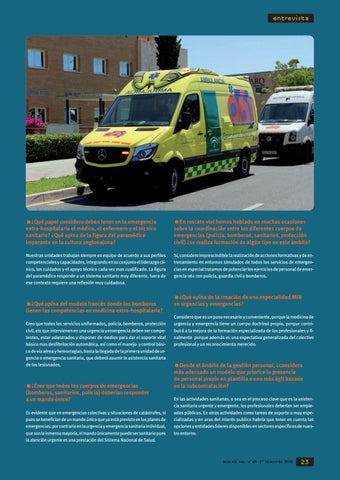 <¿Qué opina de la creación de una especialidad MIR en urgencias y emergencias? Considero que es un paso necesario y conveniente, porque la medicina de urgencia y emergencia tiene un cuerpo doctrinal propio, porque contribuirá a la mejora de la formación especializada de los profesionales y finalmente porque además es una expectativa generalizada del colectivo profesional y un reconocimiento merecido.