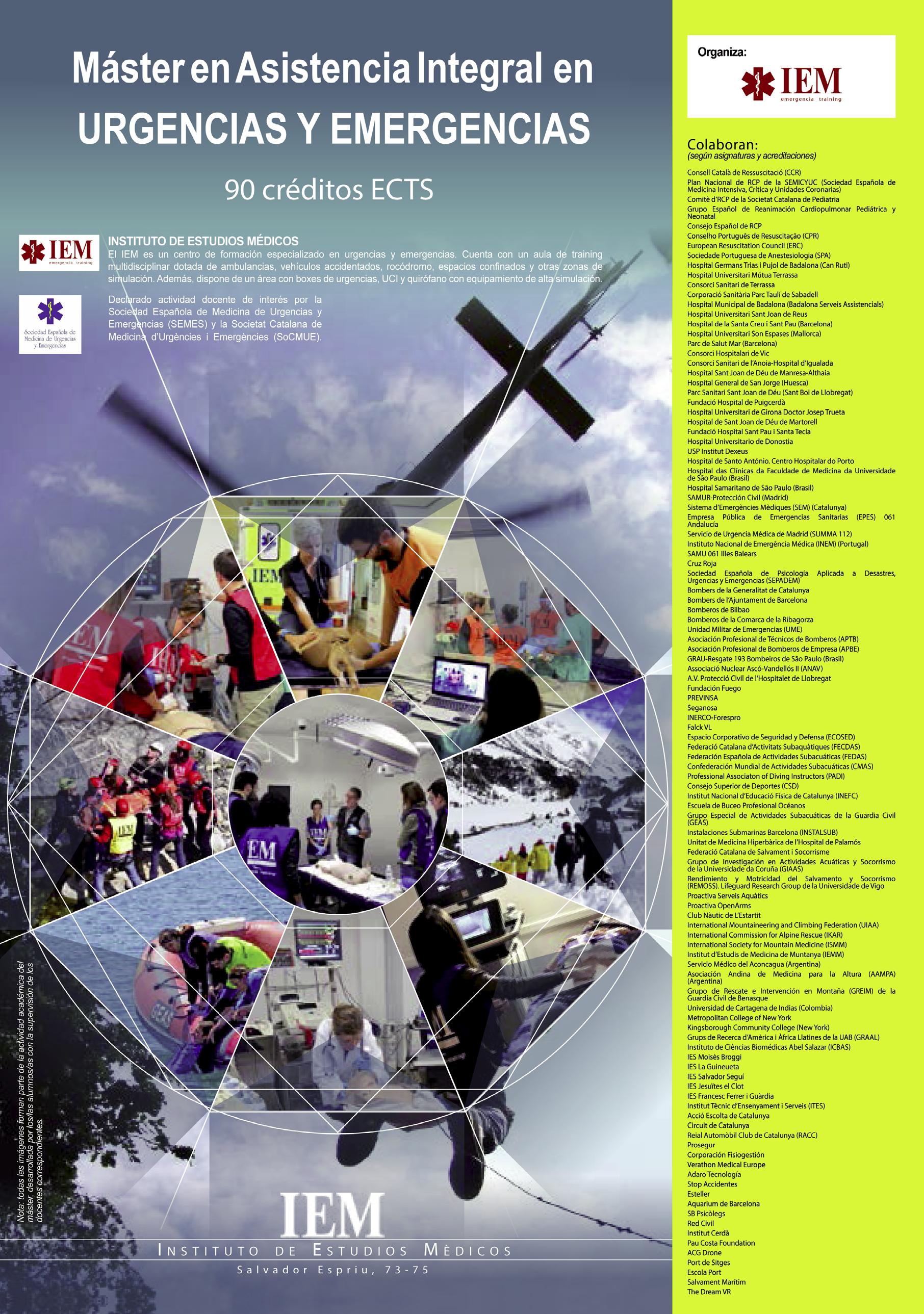 Trabajar con otras instituciones en un IMV; Control de hemorragias ; Uso de IA en IMV; Comunicación de malas noticias; Actuación inmediata ante trauma GDT SVAE letal en incidentes IMV intencionados/AMOK; Valoración inicial prehospitalaria mediante simulación clínica. Manejo práctico de la Parada GTAM cardiorrespiratoria de origen traumático; Comunicaciones en GDT IMVDES situación de IMV o desastre; Búsqueda de víctimas con drones; Rescate vertical GDT ; La vía aérea en entornos hostiles ; Soporte ventilatorio ensituaciones de IMV y catástrofes; IMV con Riesgo Químico ; Perros y tecnología para el rescate.