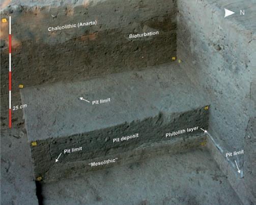 Excavación del sitio arqueológico de Loteshwar con los depósitos de las diferentes ocupaciones prehistóricas