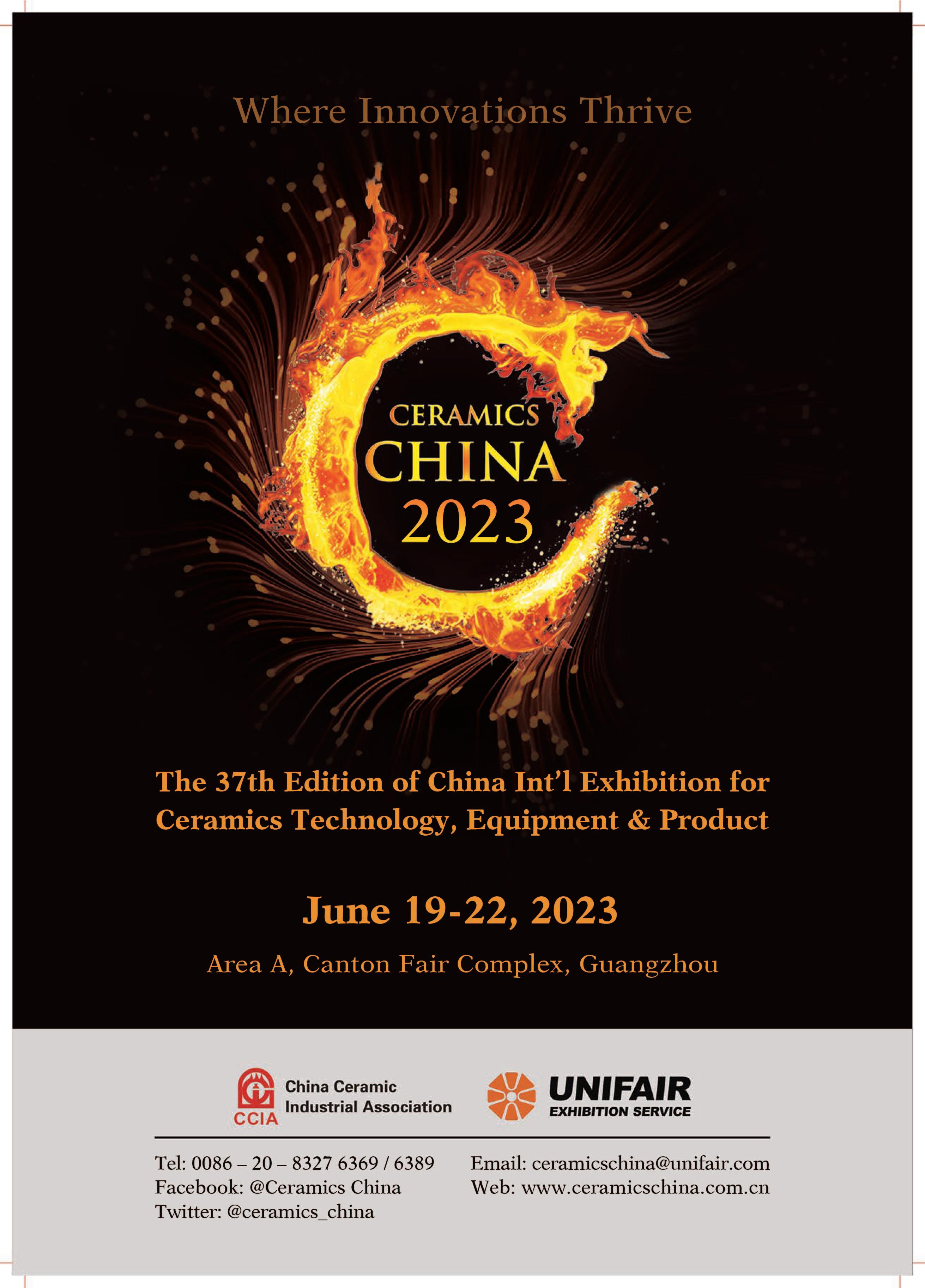 research to global innovation trends and their impact on the world ceramics industry. Exhibition. An international showcase of leading technologies, equipment, solutions, products, services, and innovations in the ceramics market. Conference. Three full days of high-level plenary sessions, series of presentations and panel discussions by expert speakers on topics ranging from new research to global innovation trends and their impact on the world ceramics industry.