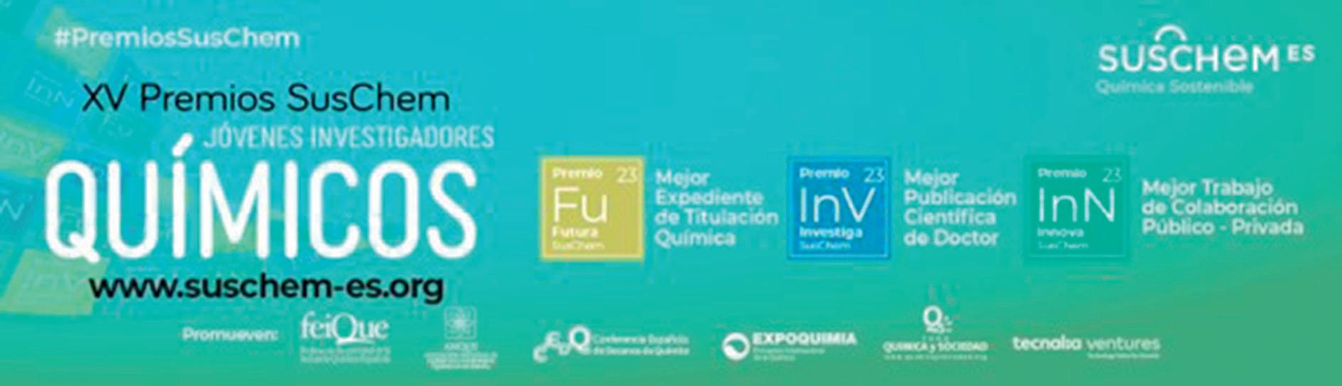 Dotación: 3.000 EUR y un año de afiliación a SusChem-España y a ANQUE. INNOVA. Premio al mejor trabajo desarrollado a partir de una colaboración público-privada. El trabajo presentado debe haber generado resultados en los tres últimos años en cualquier área relacionada con la Química Sostenible, incluidos trabajos sobre la transición hacia la economía circular, la descarbonización y el desarrollo de nuevos productos y materiales seguros y sostenibles desde el diseño (SSbD).