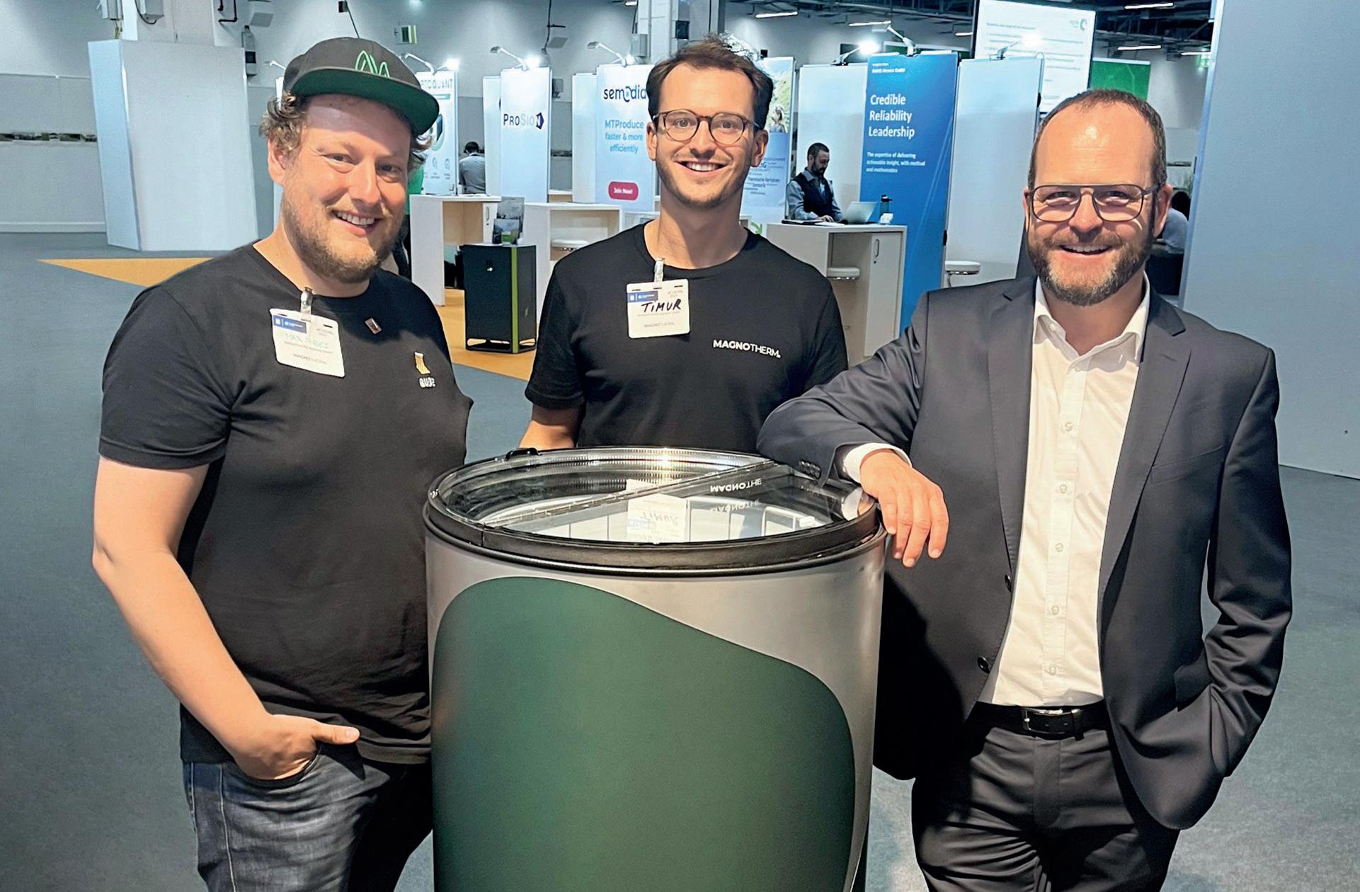 De izquierda a derecha, Maximilian Fries y Timur Sirmann de Magnotherm, y el Dr. Gunther Wobser, presidente y CEO de Lauda © Magnotherm