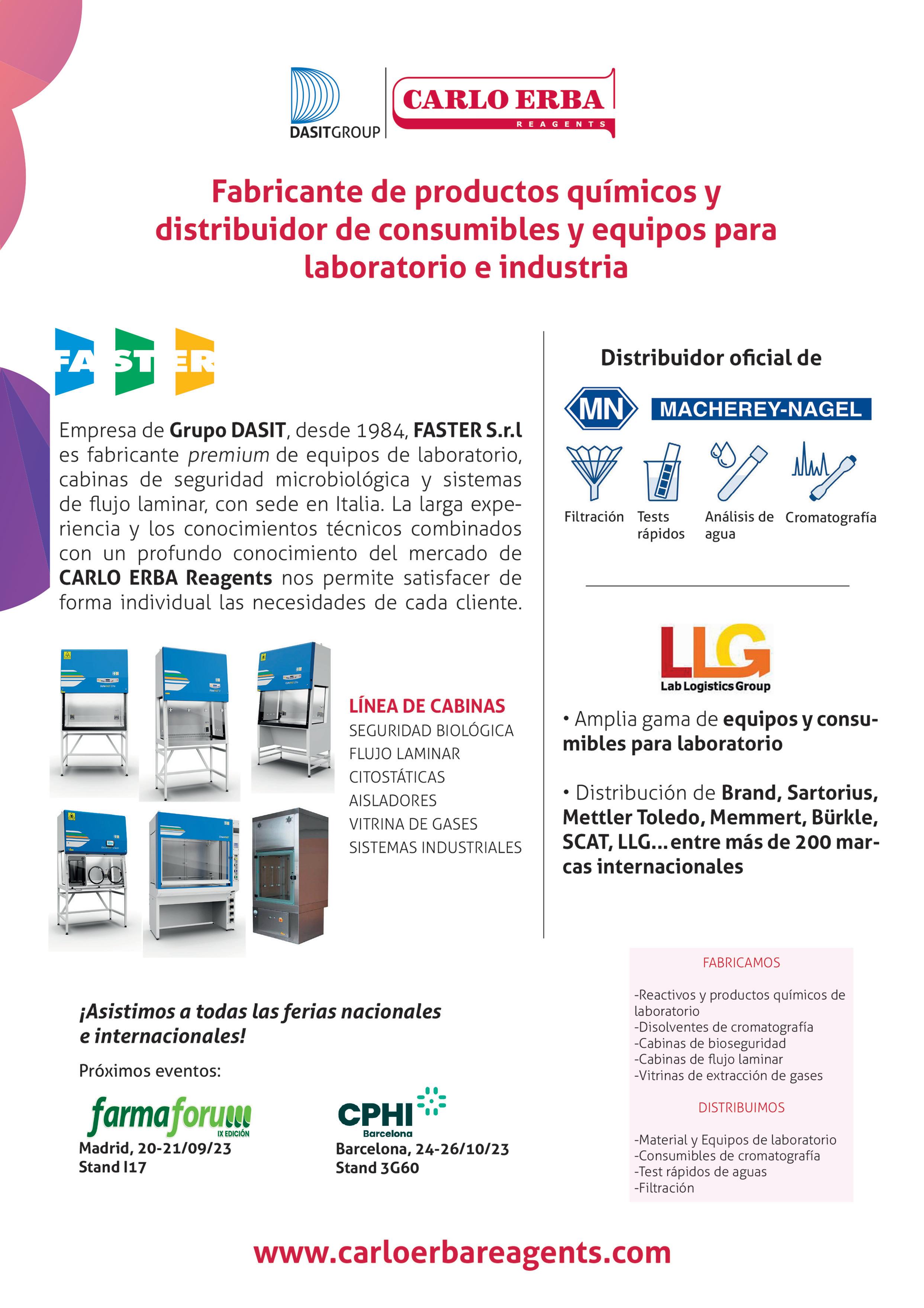Para lo que queda de 2023, vamos a participar en dos salones: la feria internacional Arablab, que se celebra del 19 al 21 de septiembre en Dubai, EUA, y en la feria Farmaforum los días 20 y 21 del mismo mes en Madrid. Además, vamos a celebrar nuestra Asamblea General Ordinaria en noviembre también en Madrid.