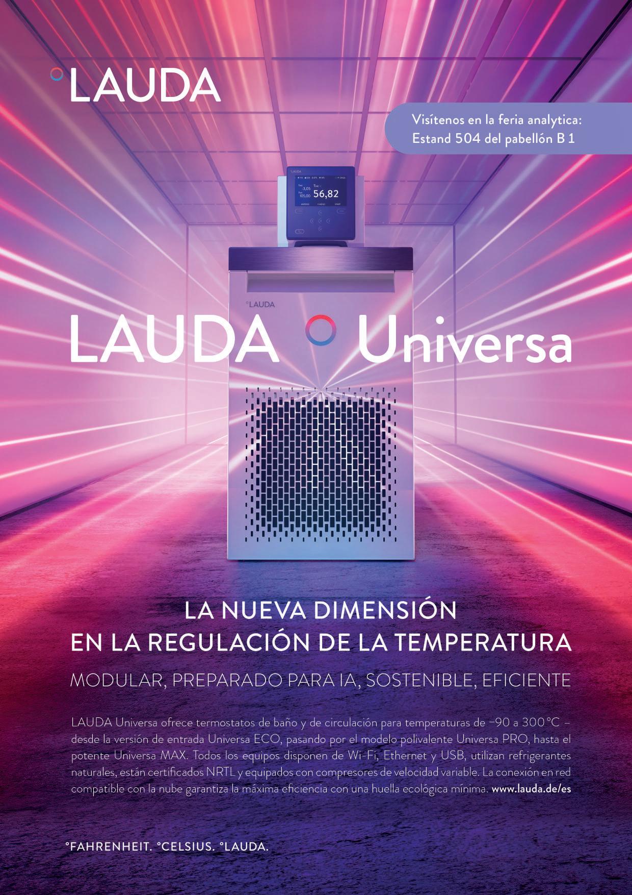 · Primera presentación en analytica LAUDA Universa ECO se presentará por primera vez este mes durante la feria profesional de referencia analytica (Múnich). El equipo podrá descubrirse con todos los demás productos LAUDA en el stand 504 del pabellón B1.