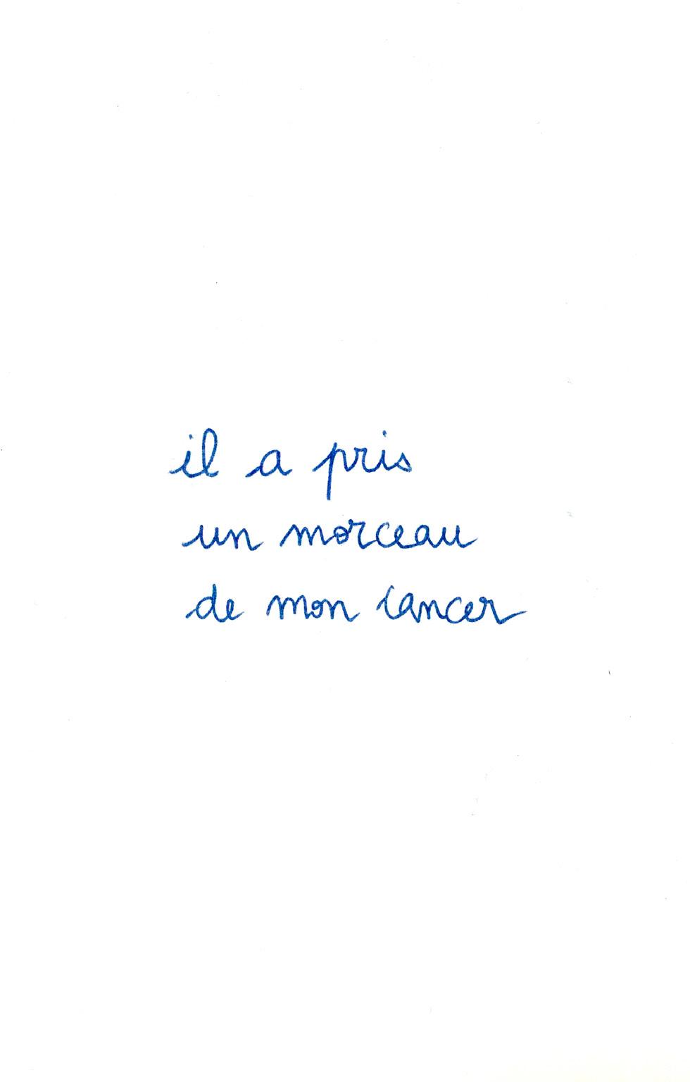 Cette publication est avant tout la leur. Elle rassemble leurs voix, tissées les unes aux autres pour élaborer un abécédaire collectif. Elle se passe facilement de main en main ou s’envoie comme une lettre. Les paroles qu’elle enveloppe brisent des silences et des récits existants sur le cancer, qu’ils soient médicaux, journalistiques, qu’ils viennent de nous ou des autres.