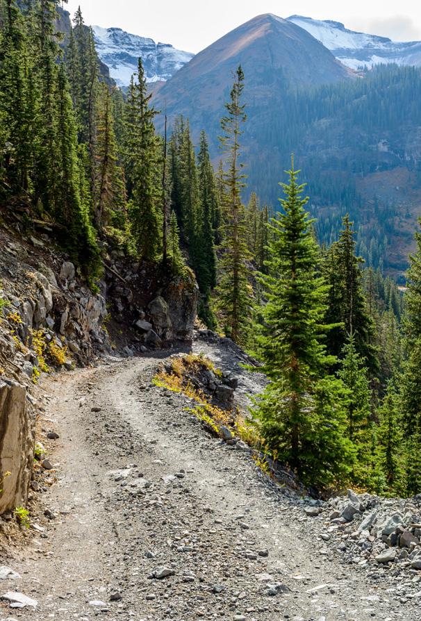 There are dozens more dirt roads permitted for four-wheel-drive adventures. Using Ouray as a basecamp, head south to Silverton, where drivers will find over 40 additional passes and jeep roads twisting through the landscape, providing jeepers the opportunity for endless exploration. Get an official trail map, talk to a jeep company and educate yourself on the skill level of each trail ahead of time. Be sure to plan accordingly. See the map on page 30 to review trails in the region. For updated trail conditions see www.soajeep.com/trail-maps-conditions.