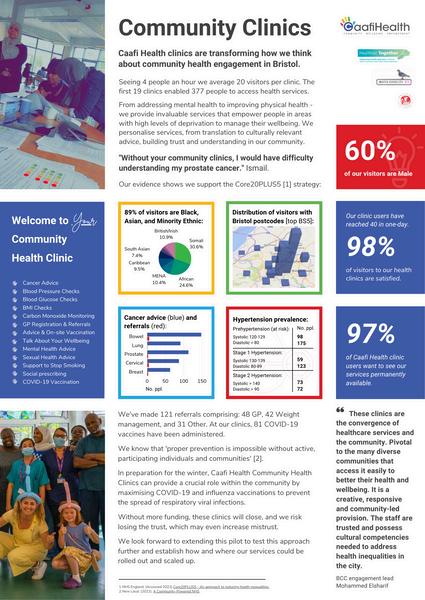 Supporting a Bristol-based Caafi Health community clinics with measuring their impact in 2022. A charity led by Huda Hajinur and Asha Mohamed