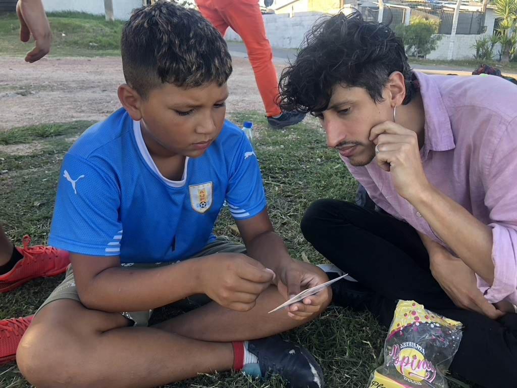 On the Miguelete, close to the harbour, the people live in improvised construction, far from the wealthy neighbourhood up in the center. Ana Laura works here since some year, engaging with community and bringing her ressources to reinvent with them living here. She invites me to do the “river cards” with children living around. With her assistant we play with them and draw cards. All the boys want to become football player and they ask me if I know Mbappé.