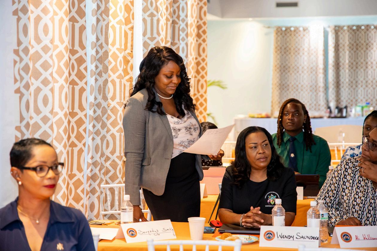 Deputy Governor and Head ServiceH.E.AnyaWilliams,wh graduation ceremony, cong graduates, stating, "On Frida 2024,joinedbythePermane Finance Mrs. Athenee Harve newly appointed Chair of Authority Pastor Bradley Ha proud to witness the co ceremonyofourStatistics
