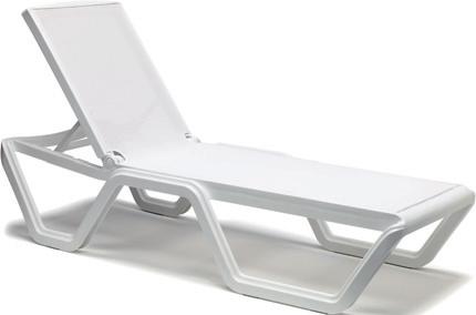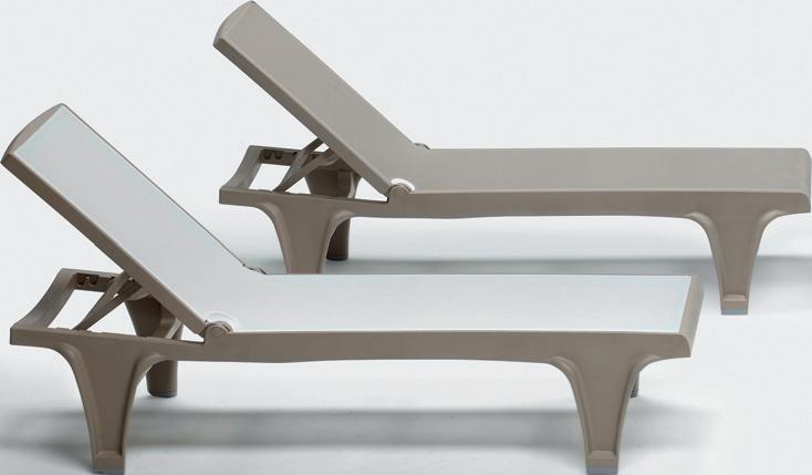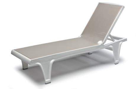 lettino da sole impilabile con ruote - struttura in tecnopolimero e fibra di vetro - viterie in acciaio inox - regolabile in 5 posizioni