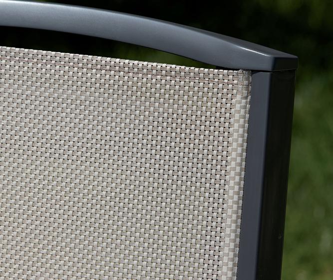 This folding armchair has a technopolymer frame and a seat and back in breathable waterproof fabric. The backrest can be adjusted to 5 different positions.