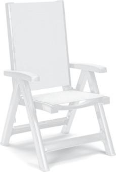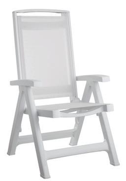 Poltrona chiudibile con struttura in tecnopolimero e seduta e schienale in tessuto traspirante idrorepellente. Schienale regolabile in 5 posizioni