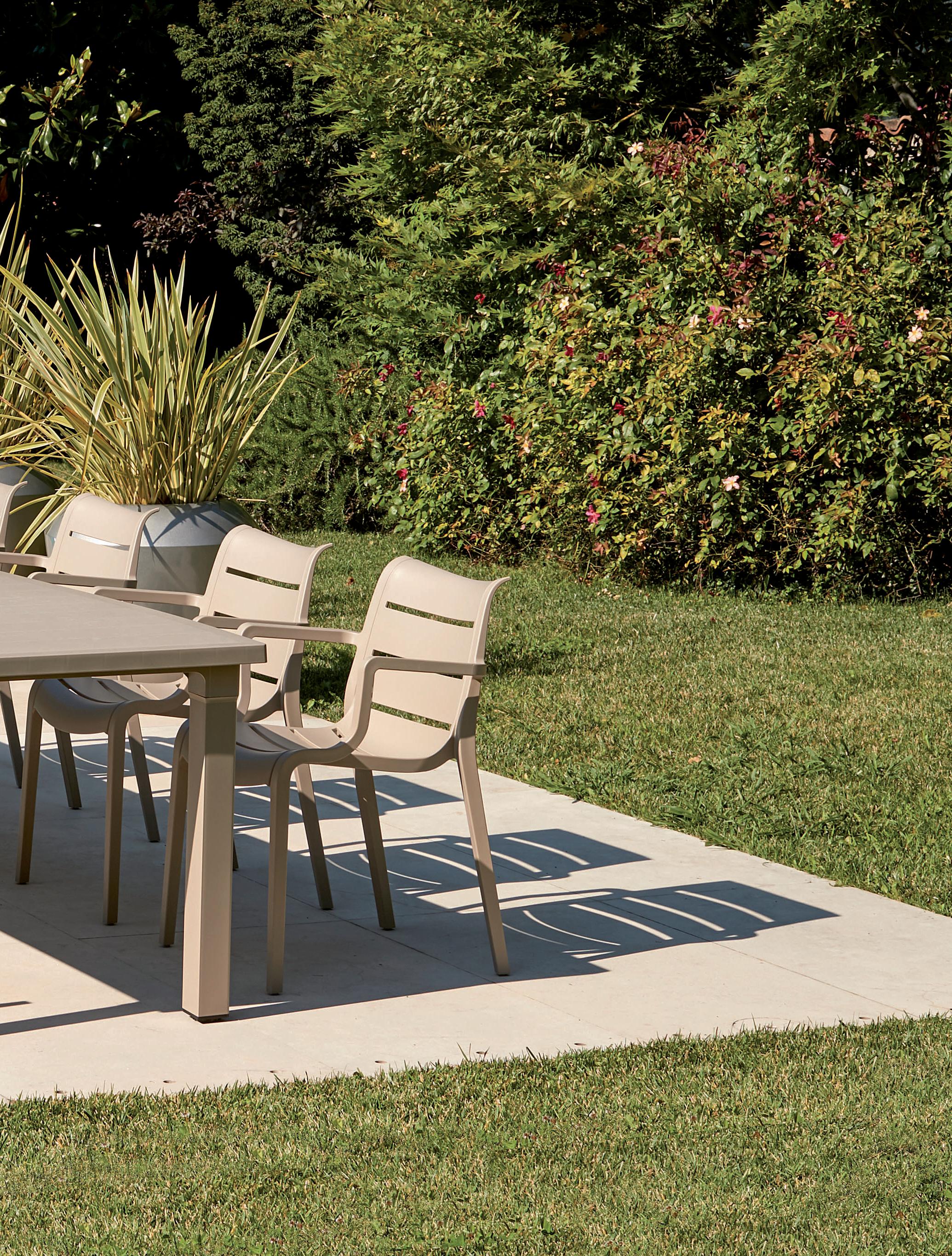 La struttura in tecnopolimero ne permette l’utilizzo sia in spazi d’incontro e pubblici che nel giardino di casa.
