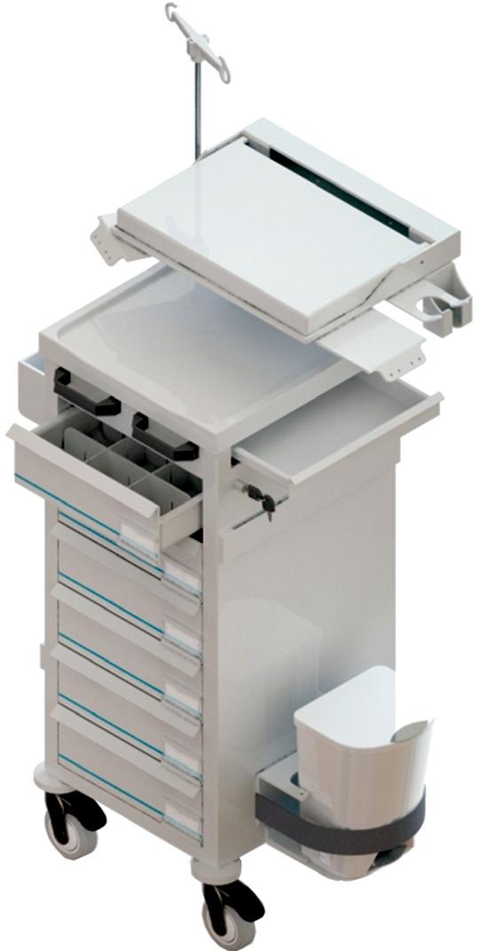Para garantir a segurança, os tampos, gavetas e laterais possuem nanotecnologia antibacteriana. Os carrinhos Beira leito e prontuário eletrônico são confeccionados em polímero ABS de alto impacto com nanotecnologia antibacteriana e base em aço carbono com acabamento em pintura epoxi pó.