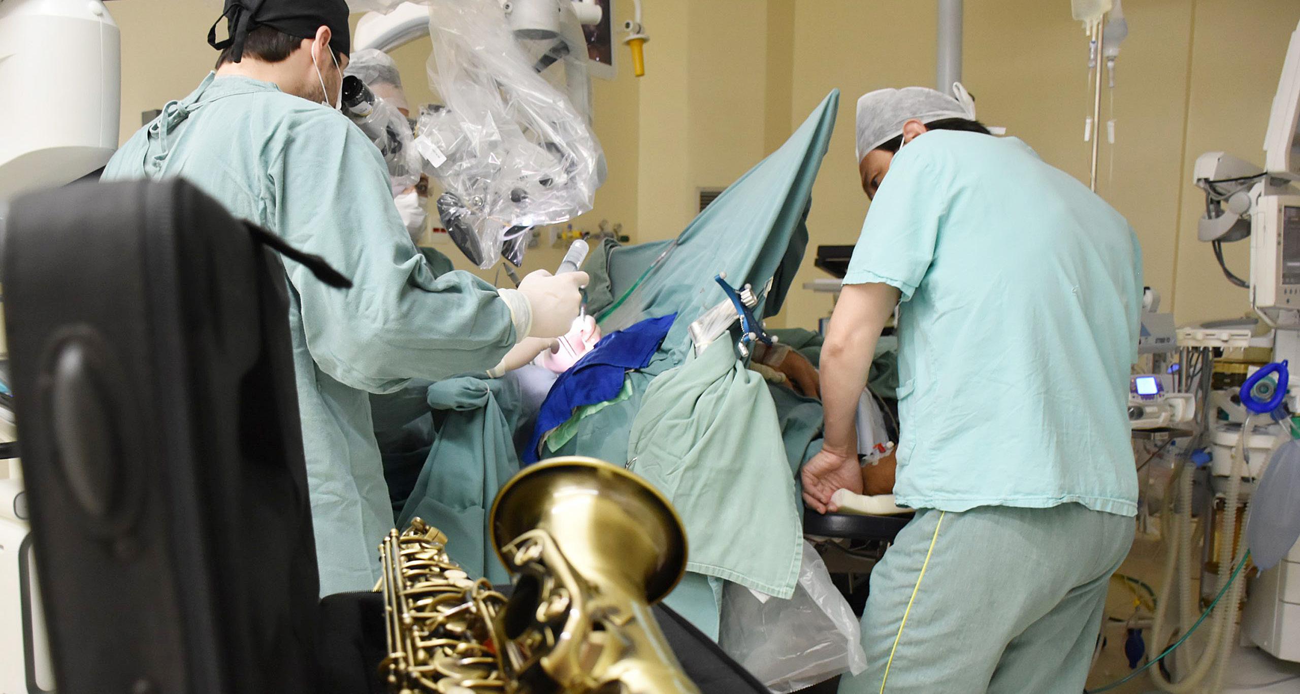 10 CIRURGIA Paciente da Santa Casa de Porto Alegre toca saxofone durante cirurgia no cérebro