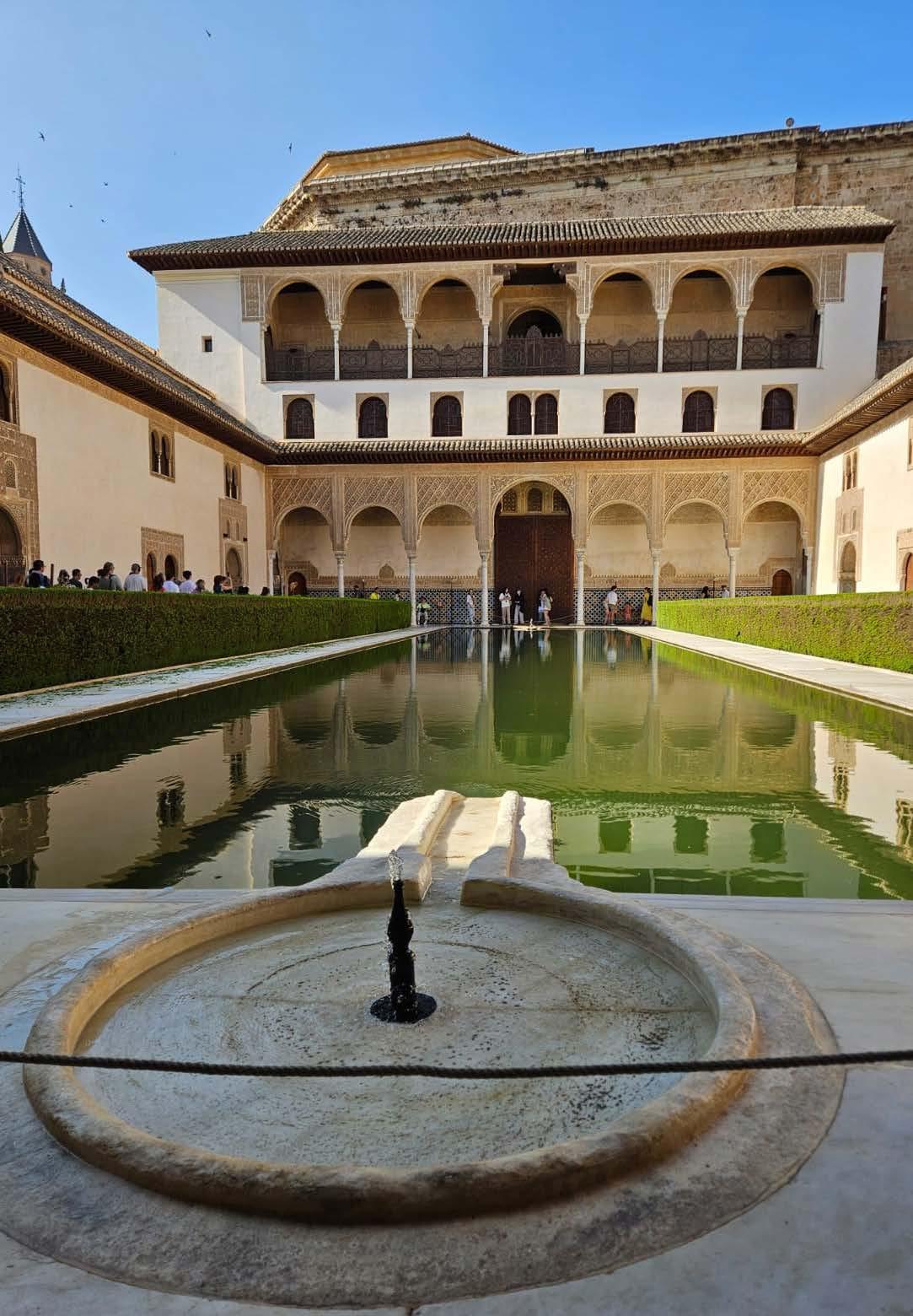El palacio de Comares, era residencia real nazarí y uno de los lugares más impresionantes por el famoso Patio de los Arrayanes (s.XIV).