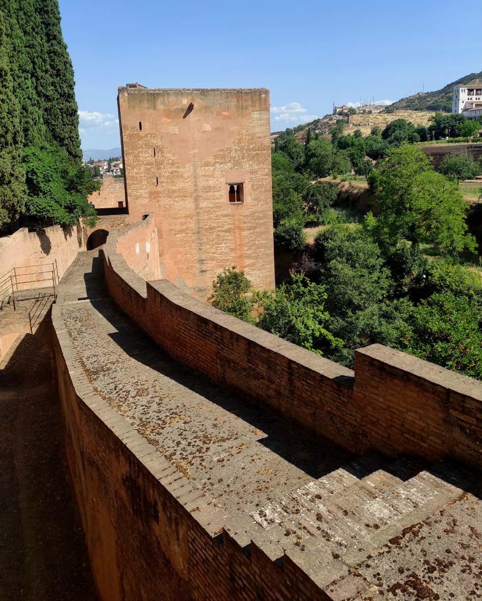 en una ciudadela de altas murallas y torres defensivas, que alberga el cuartel de la guardia real y las viviendas de los soldados que protegían la ciudad, cuyas plantas reflejan, por sus tamaños la categoría de cada cual. Desde lo alto de sus robustas murallas, sobresalen la Torre de la Vela, la del Homenaje, o la del Cubo, desde donde se disfruta de panorámicas vistas de la bella ciudad de Granada.