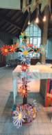 la croix est recouverte de fleurs colorées pour symboliser la joie de la Résurrection de Jésus.