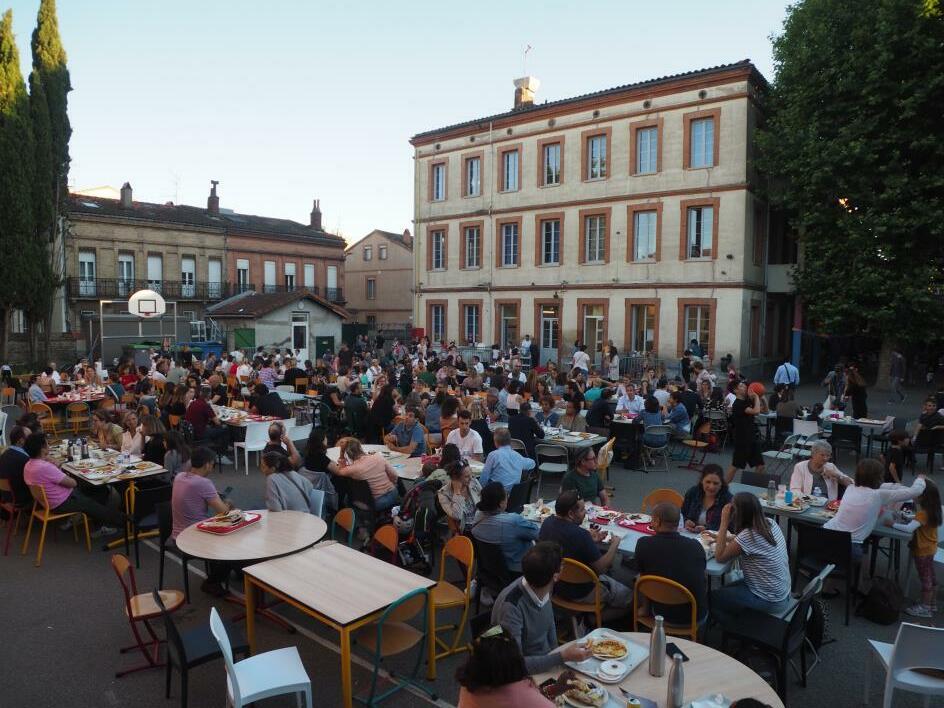 La cour se fait salle de restaurant … … pour clôturer cette belle soirée par un repas convivial et festif !