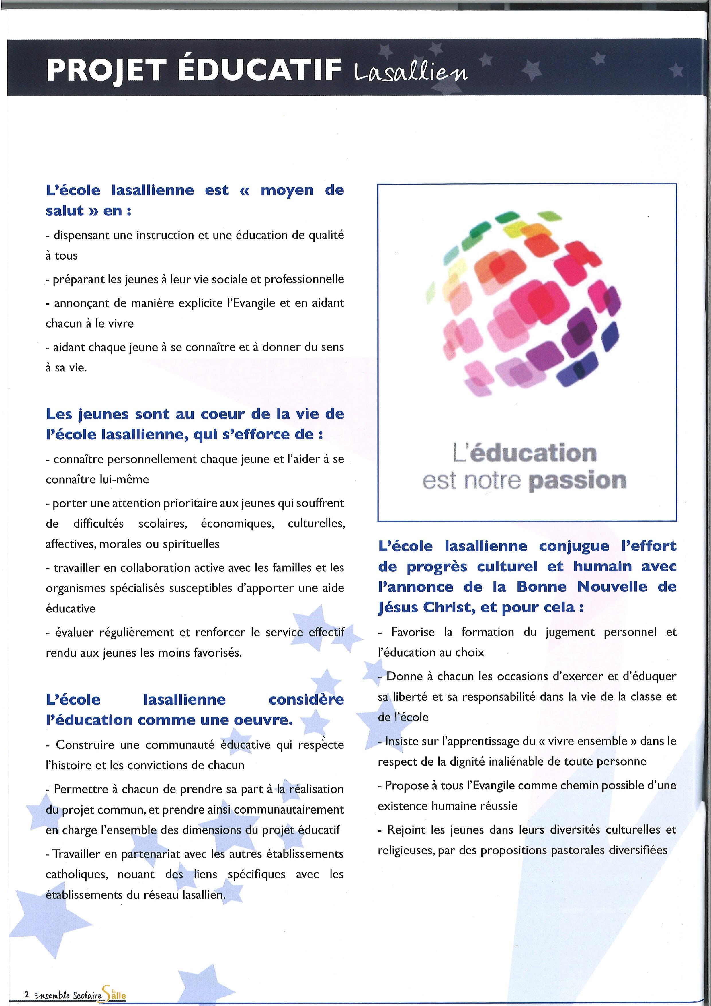 Un établissement catholique se doit d’être ouvert à tous, dans le respect de chacun, mais avec ce souci bien ancré de communiquer à tous le message de l’Evangile, source de bonheur et de salut pour chacun.