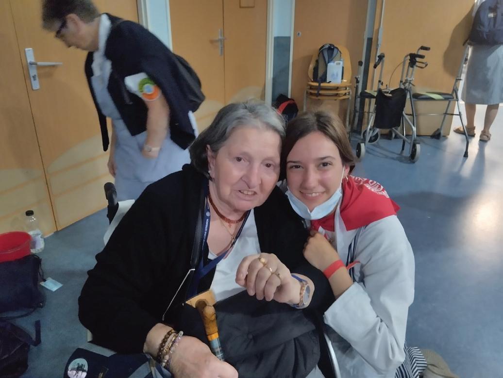 Puis vient le vendredi matin et l’arrivée de tous les malades qu’il faut aider à descendre du bus, installer dans leurs chambres. La mise à l’eau est directe et sans filet, mais tous savent ce qu’ils doivent faire. Le va-et-vient des fauteuils dans lesquels sourient déjà nos frères et nos sœurs offre un ballet sans faux pas. Souvent le premier regard suffit et tous les lycéens posent une réalité sur ce qui n’était encore qu’un témoignage la veille : « la plupart de nos frères malades et handicapés attendent ce pèlerinage parfois depuis le retour de celui de l’année dernière ».