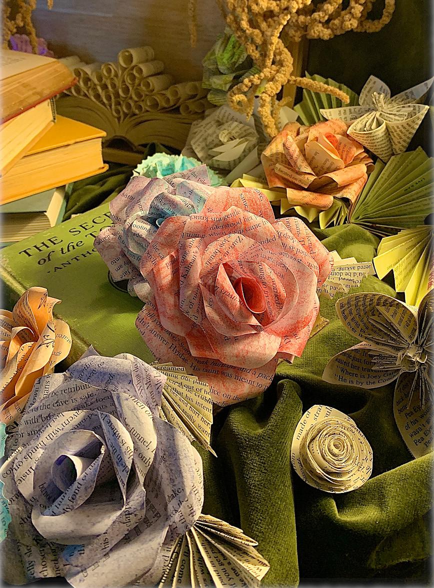 Repurposing book pages to petals by Turner Striffler of Wantage, NJ.