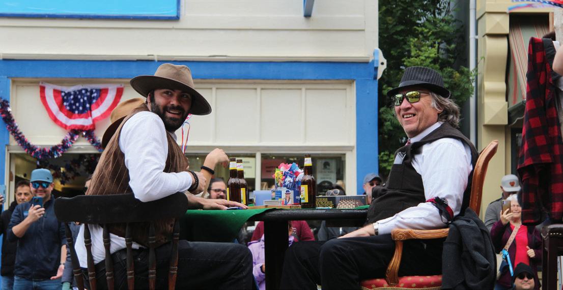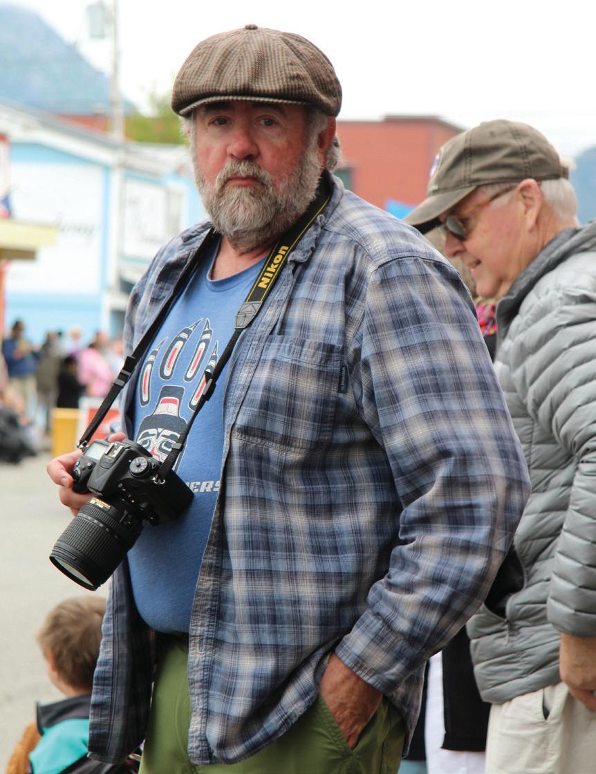 Have camera, will shoot. Jeff Brady takes a break from recording July 4 history in front of his bookstore, The Skaguay News Depot & Books.