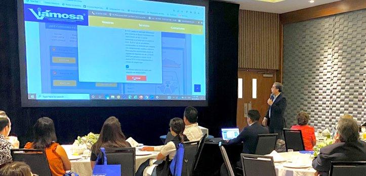Daniel Martínez, gerente general de Viamosamostrósucompletosistema de cotizaciones de cruceros en línea. “Les recomiendo que usen viamosa.com para todas las cotizaciones de sus cabinas. Ahí pueden reservar, cotizar, recibir su confirmación y continuar. Es muy fácil y les va a servir mucho a ustedes”, mencionó.