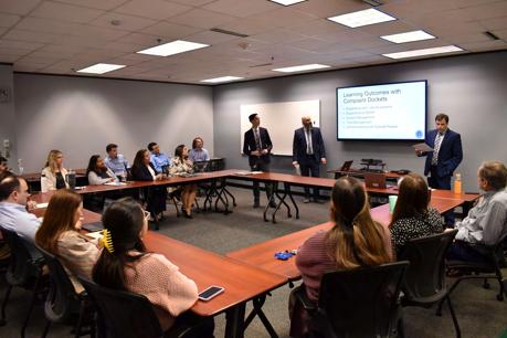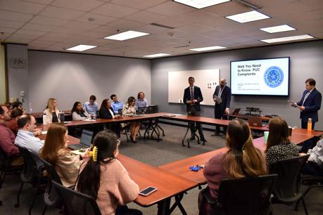 La primera clase, “Lo que necesita saber sobre las quejas”, celebrada en la PUCT el 11 de abril, explicó a los asistentes cómo navegar el proceso de quejas de la PUCT. Los expedientes de quejas a menudo se asignan a los nuevos abogados de la PUCT para ayudarlos a aprender en el trabajo más rápidamente.