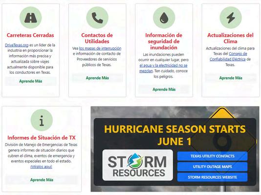 Supervise los mapas de interrupciones y encuentre información de contacto para ellos en nuestra página de Recursos para tormentas: https://puc.texas.gov/storm