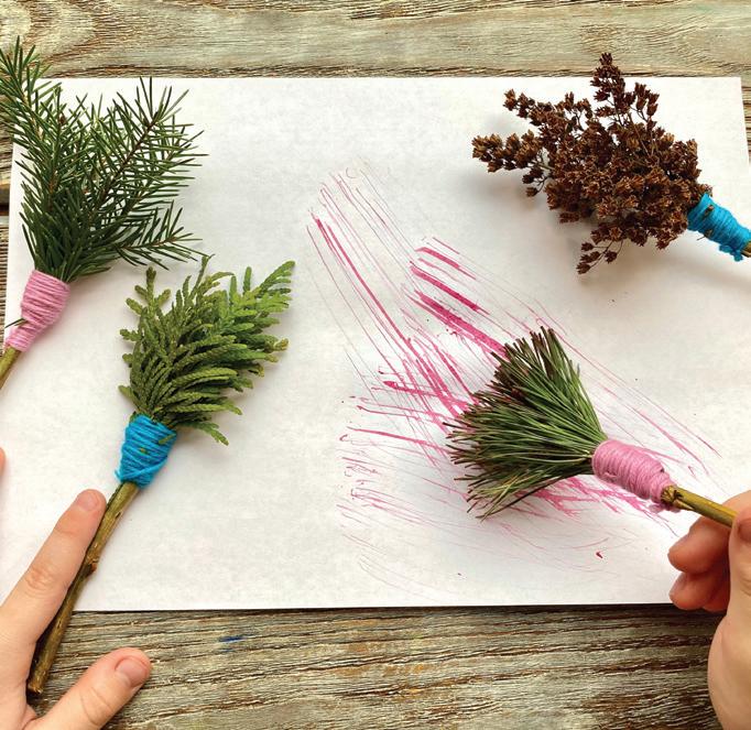 3. Dip in paint and brush to create some unique nature inspired textures and shapes!