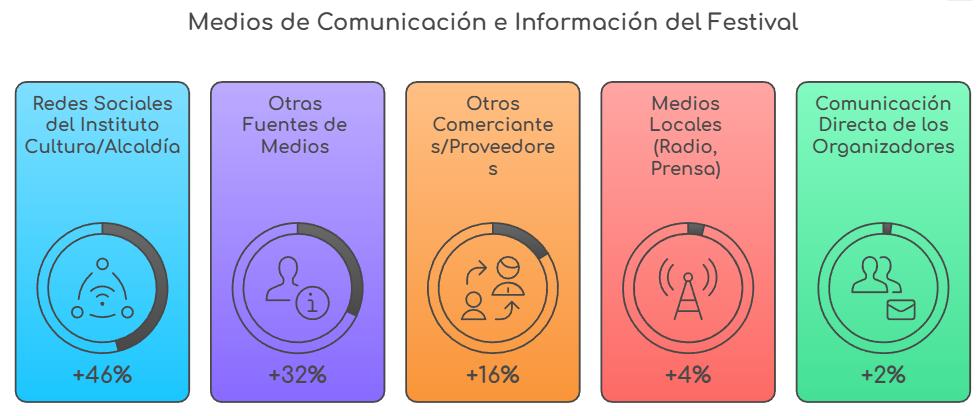 Cuando se les preguntó a los comerciantes sobre los medios de comunicación por los cuales se enteraron del Carnavalito, el 46% respondió que el medio principal por el cual se enteraron de las distintas actividades del festival fueron las redes sociales del Instituto de Cultura y la Alcaldía. Un 32% se enteró por otras fuentes como los clientes, un 16% fue gracias a otros comerciantes o proveedores, un 4% fue por medios tradicionales como radio o prensa y un 2% fue por comunicación directa con los organizadores del evento.