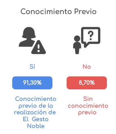 Al preguntarle a los establecimientos comerciales si sabían sobre la realización de El Gesto Noble, el 91,30% dijo tener conocimiento al respecto; mientras que un 8,70% reconoció no tener conocimiento. Esto demuestra que el sector comercial carmelitano reconoce el festival como parte fundamental de la vida cultural del municipio.