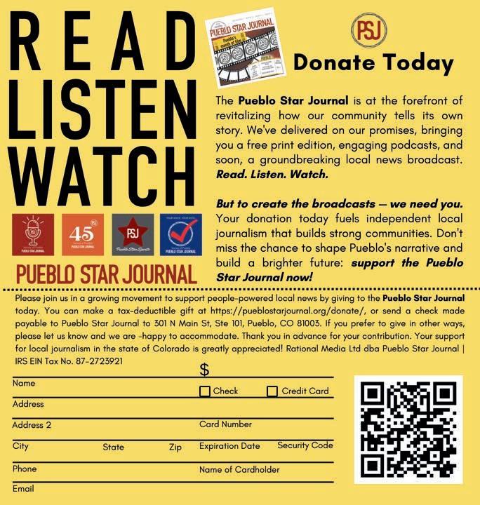 Looking for a meaningful cause to round out your charitable contributions for the tax year? Look no further than the Pueblo Star Journal and support local news. Rational Media Ltd dba Pueblo Star Journal is a 501(c)(3) nonprofit organization. Make your donation by Dec. 31 to ensure that it can be deducted from this year’s taxes.
