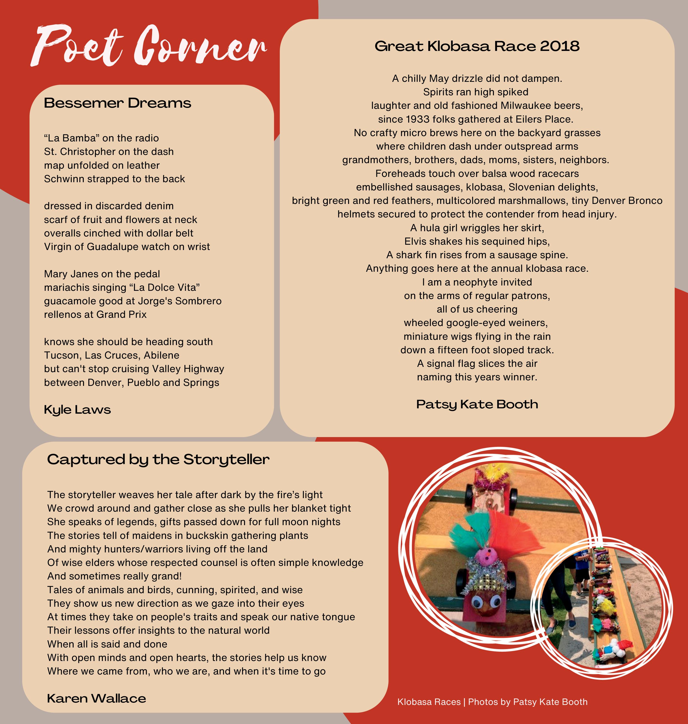 Special thanks to: Beulah Valley Pottery, Center Toward Self Reliance, Colorado Health Symposium, Creative Consortium of Pueblo, Fuel & Iron, Karmic Konnection, Steve Kelley, Mosh Ramen, Photography by Lyss, Pueblo Brain Injury, Pueblo Hispanic Education Foundation, Pueblo Makes, Pueblo Friends of the Arkansas River, Pueblo Transit, Sangre de Criso Arts and Conference Center, Senior Resource Development Agency, Surelock Locksmith and The Ethos,