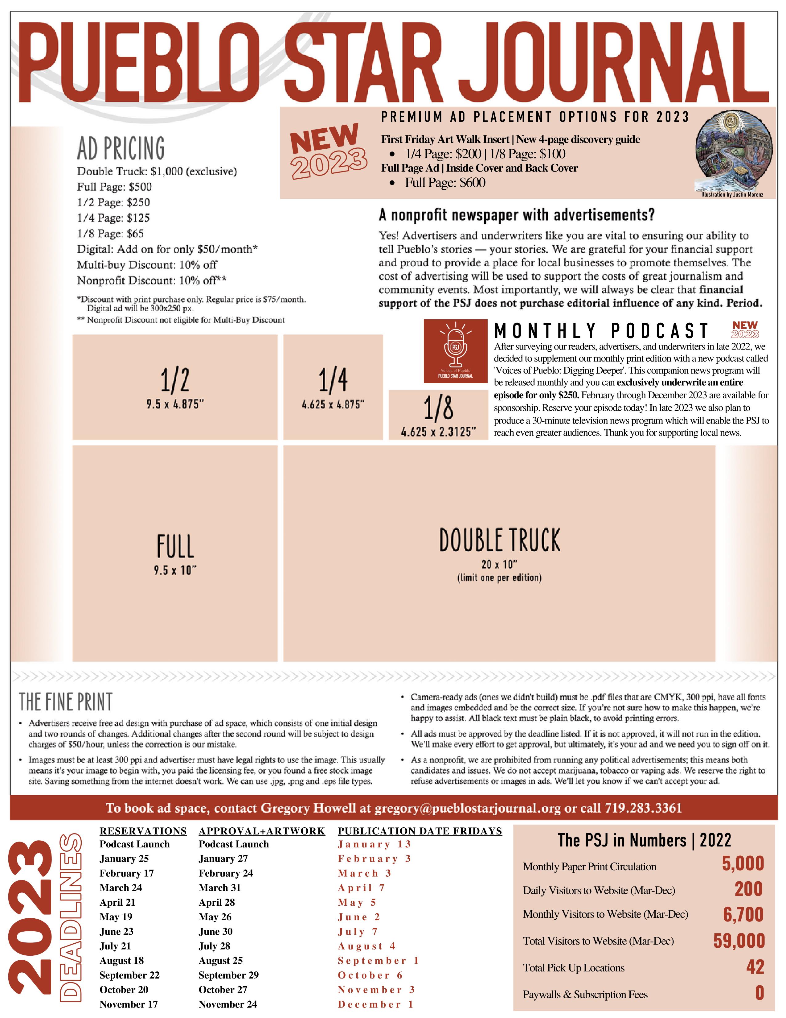 Rational Media Ltd. dba The Pueblo Star Journal is fiscally sponsored by Positive Content. As a fiscal sponsor, Positive Content acts as an umbrella organization for our missionfocused work, and accepts and administers funds on our behalf. Positive Content is a 501(c)(3) nonprofit organization which makes all donations to us tax deductible.