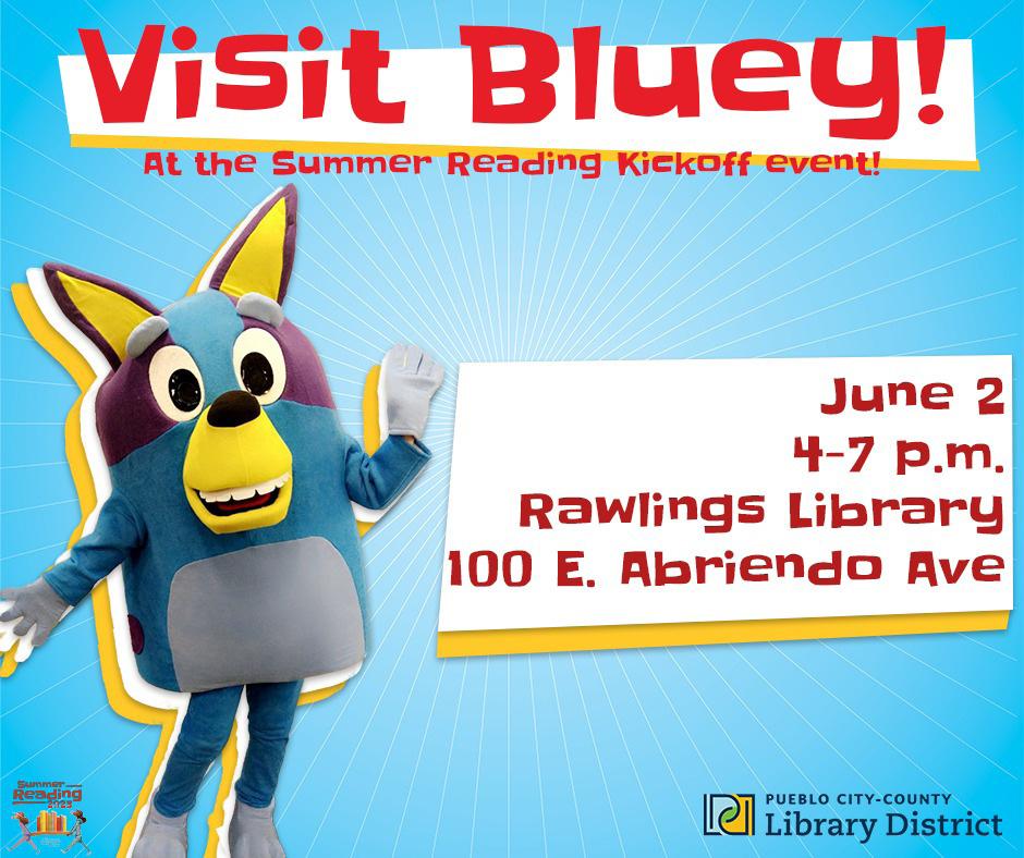 SUMMER READING KICKOFF WITH BLUEY AT THE RAWLINGS LIBRARY.