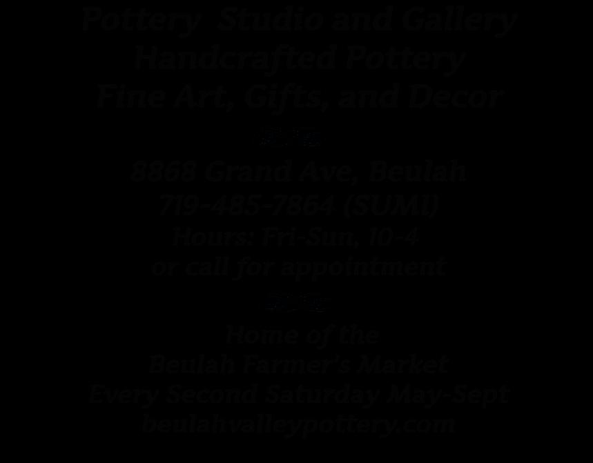Special thanks to: Artisan Textile Company, Beulah Valley Pottery, Central High School, Center Toward Self Reliance, Colorado Health Symposium, Family Practice of Ted Puls, MD & Julianne Maitski, PA-C, NAMI Southeast Colorado, Photography by Lyss, Pueblo Chieftain Printing, Pueblo City-County Library District, Pueblo Economic Development Corp, Pueblo School District 60, Pueblo West Library, Sangre de Criso Arts & Conference Center, Southern Colorado Small Business Development Center, Sure lock Locksmith, SRDA.