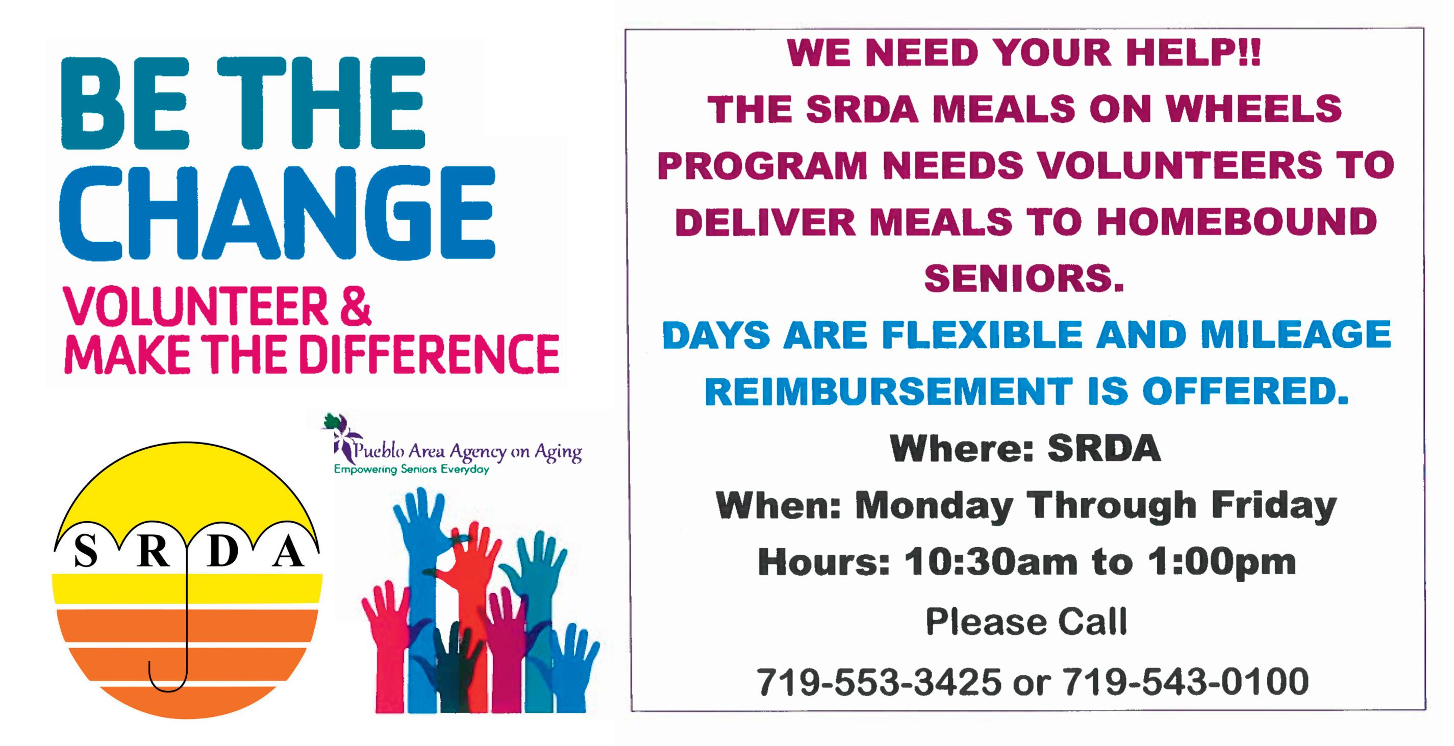 Meets 10 a.m. Mondays in front of Senior Resource Development Agency (SRDA), 230 N. Union Ave. Info: 719-553-3446 or richmond@srda.org