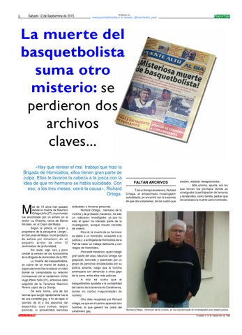 La muerte del basquetbolista suma otro misterio: se perdieron dos archivos claves... «Hay que revisar el mal trabajo que hizo la Brigada de Homicidios, ellos tienen gran parte de culpa. Ellos le lavaron la cabeza a la jueza con la idea de que mi hermano se había suicidado. Con eso, a los tres meses, cerró la causa», Richard Ortega.